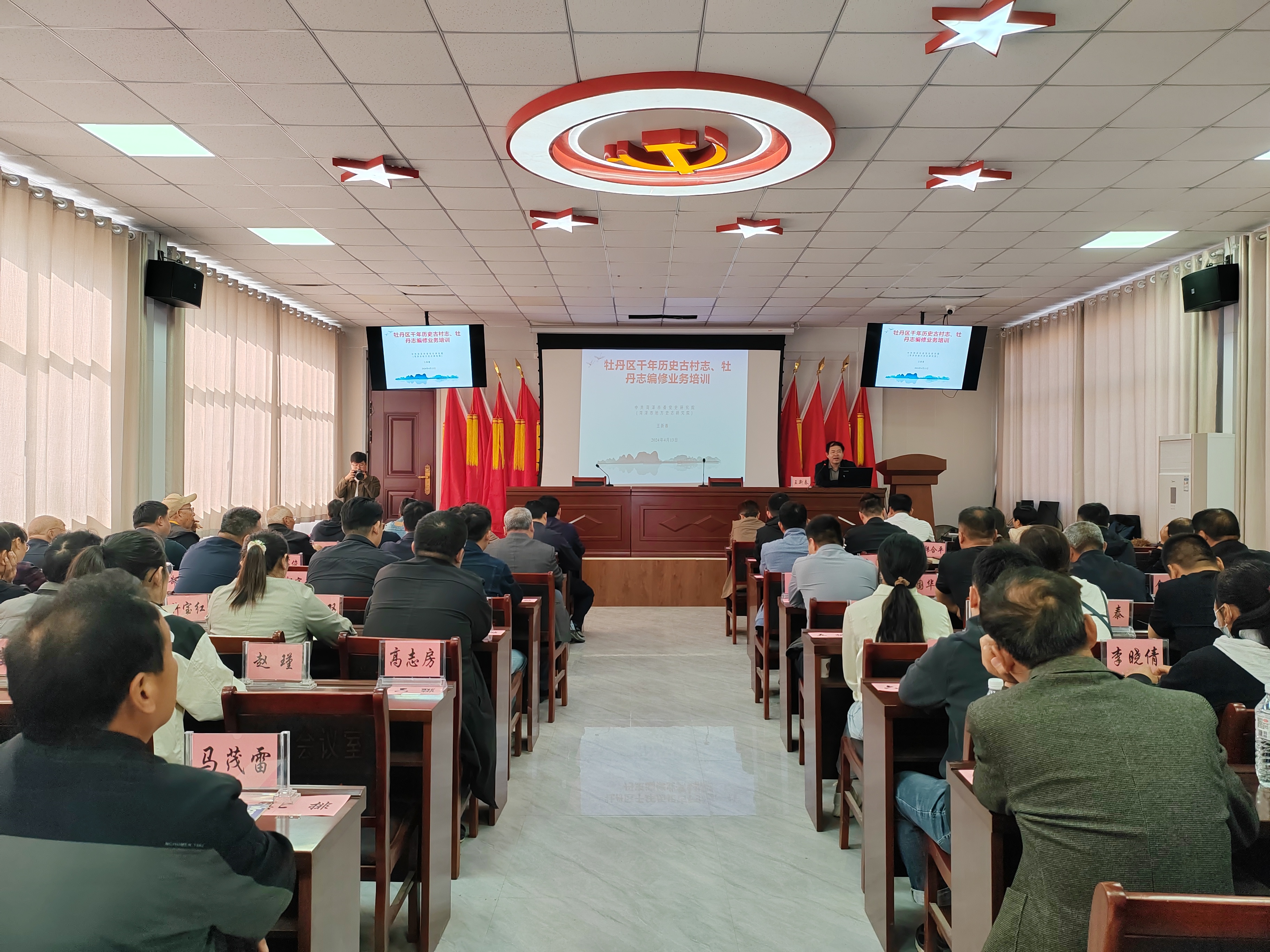 牡丹区委高度重视地方史志编修,3月29日,区委书记尹茂林就做好牡丹区红色文化挖掘保护以及千年历史古村志、牡丹志编修专门作出批示,要求全面抓好红色文化抢救式挖掘,做好千年历史古村志、牡丹志的编修,为高质量推进全区党史史志奠定了基础。为全面提高编修村志、牡丹志业务能力水平,4月19日-21日,牡丹区委党史研究中心采取开展专题培训、入村现场指导、赴济研学座谈、参观章丘区方志馆等多种形式,增强编纂志书能力。4月19日,牡丹区召开全区千年历史古村志、牡丹志编修业务专题培训会,邀请市委党史研究院业务指导科一级主任科员王新春授课。王新春从志书编修的重要意义、村志编写篇目大纲、村志的体裁、章法等几方面做了深入浅出的讲解,为下一步更好地开展镇村志的编修打下了良好的基础。牡丹区委党史研究中心范长军表示:“提升镇志、村志编纂质量,需要一批有热情、有干劲、有实力的编纂队伍。希望大家以对历史高度负责的态度,用心、用情、用力编写出经得起时间和人民检验的精品佳志。”