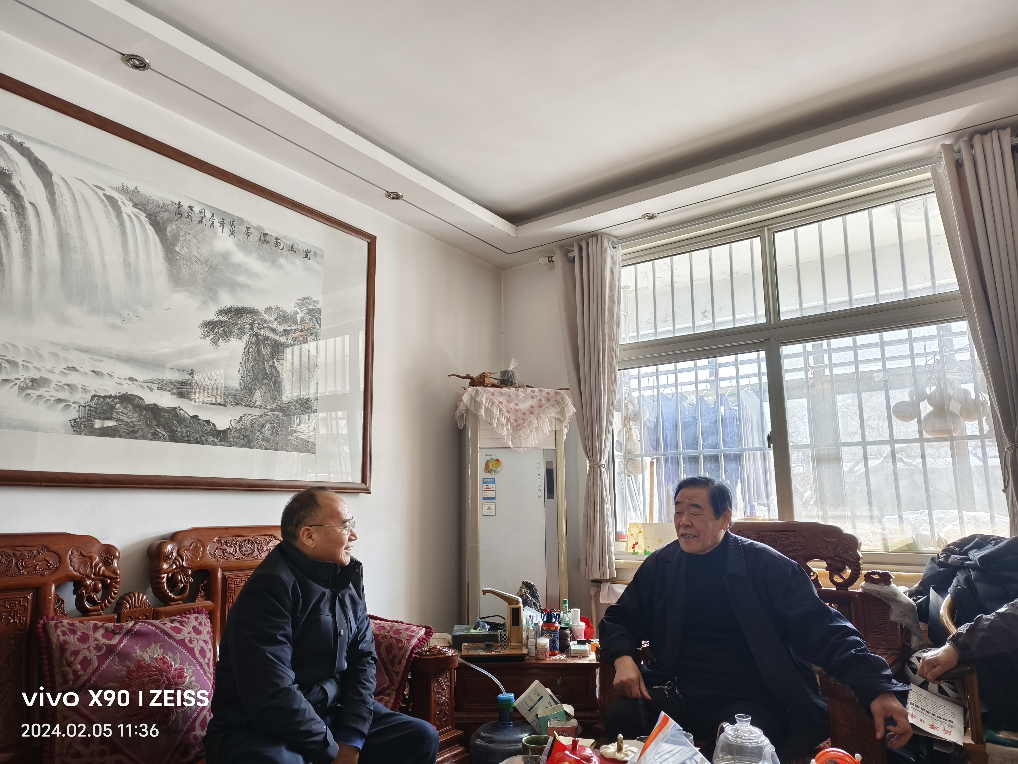 2024年2月5日,在新春佳节来临之际,菏泽市委党史研究院院长、一级调研员田文建带队走访慰问离退休老干部,为老同志送去组织的温暖与关怀。田文建每到一处,都与他们促膝交谈,拉家常、听心声,了解他的身体状况及生活情况。看到他精神矍铄、身体硬朗,田文建十分欣慰,他说,老党员老干部是党光辉历程的见证者、参与者,是我们的宝贵财富。希望老同志们在保重身体的同时,继续发挥余热,关心、支持党史工作,积极为党史事业的高质量发展建言献策。