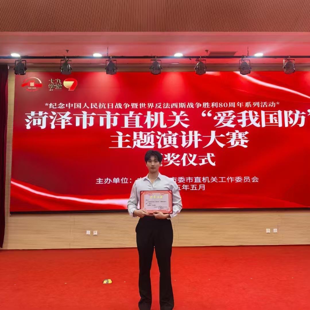 5月30日,菏泽市直机关“爱我国防”主题演讲大赛在菏泽职业学院圆满举办,我院两名选手在赛场上表现亮眼、载誉而归。