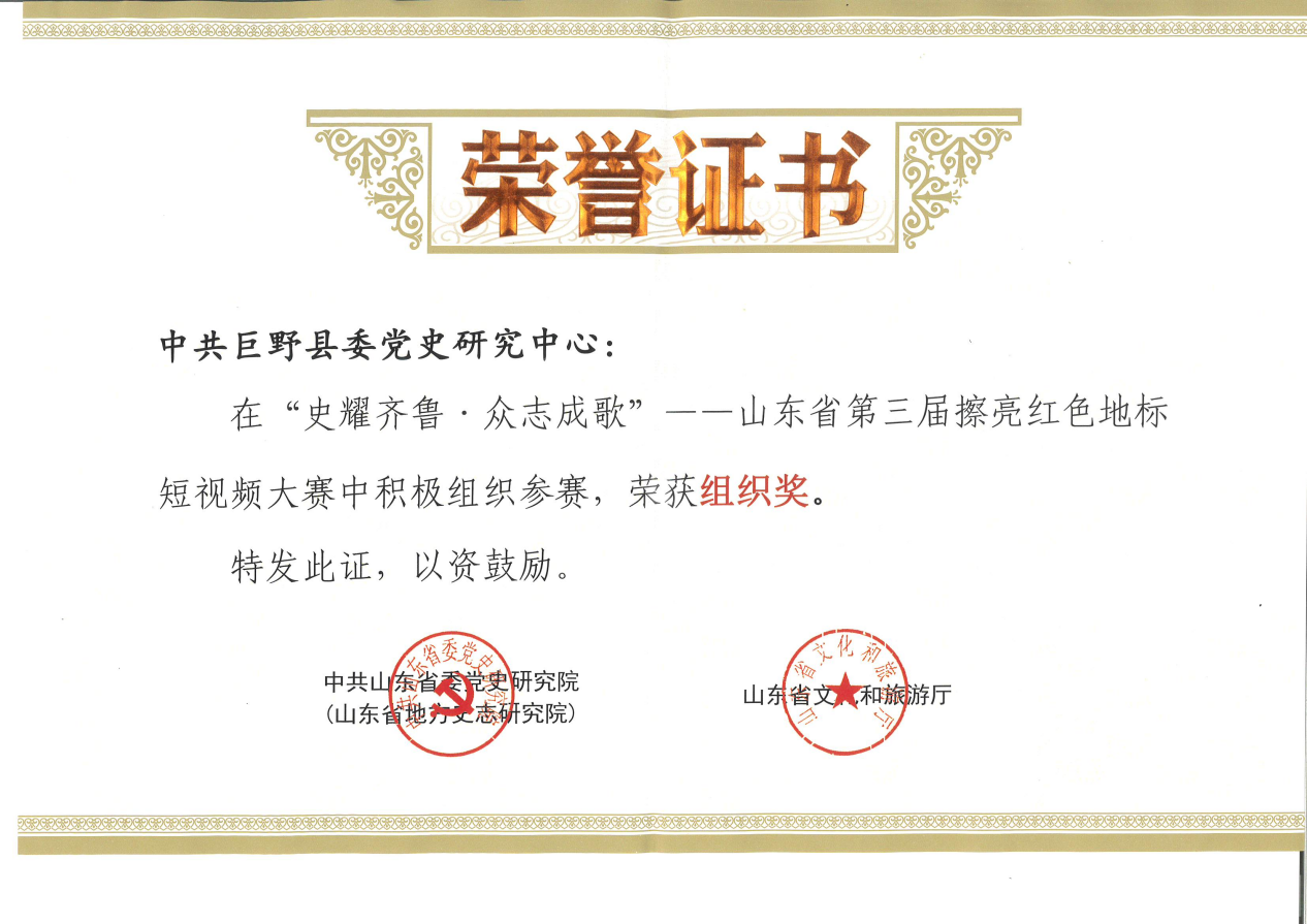 其中,《锡壶挑里的红色秘密》《巨野抗日第一枪》《一封家书里的抗战烽火》均获评全省三等奖,巨野县委党史研究中心更因组织有力、成果丰硕,被大赛组委会授予“优秀组织奖”。
