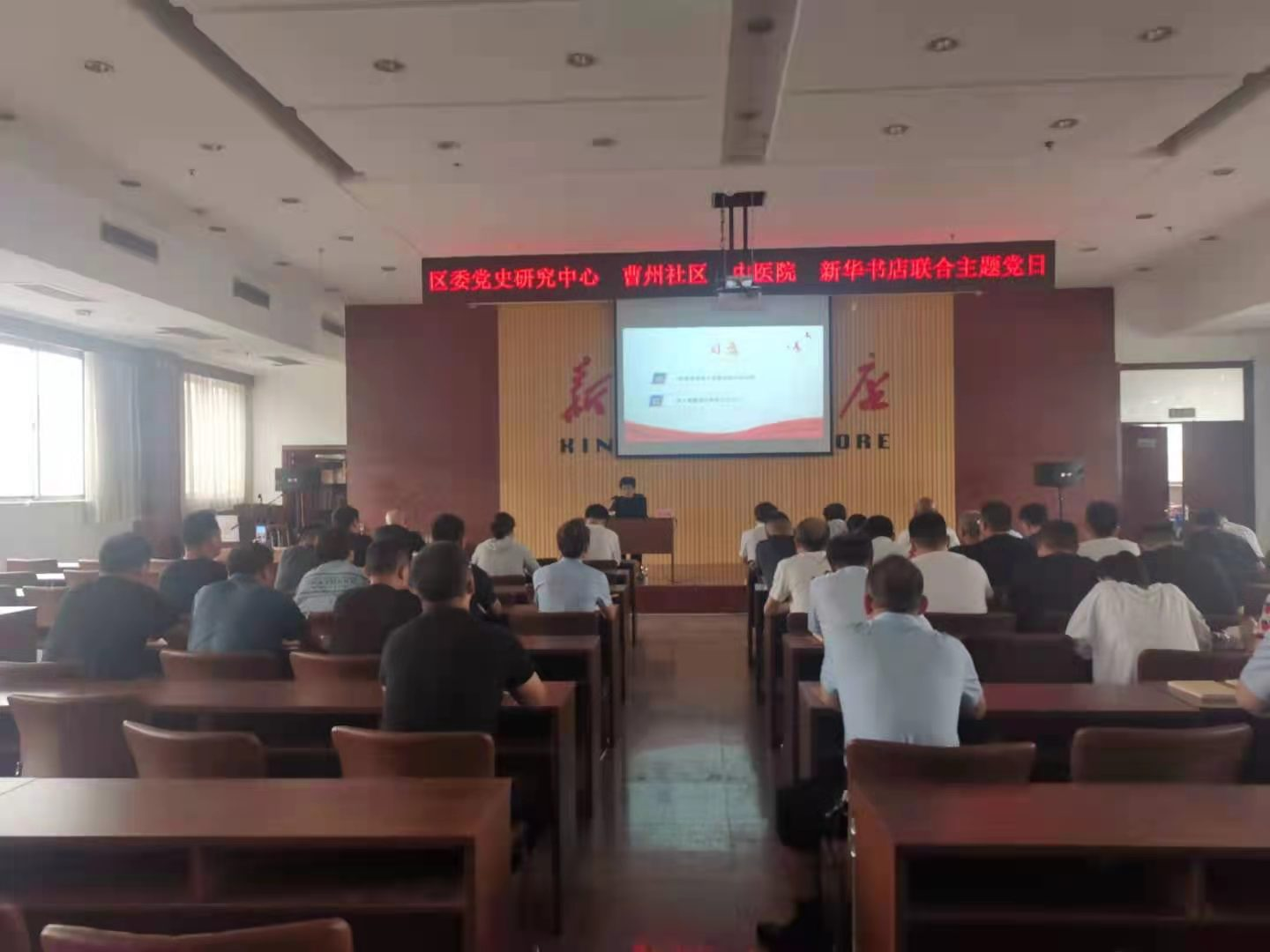 7月5日,牡丹区委党史研究中心联合南城街道办事处曹州社区、牡丹区中医院、菏泽市新华书店开展给全体党员上党课活动,重温入党誓词 唤醒党章意识。