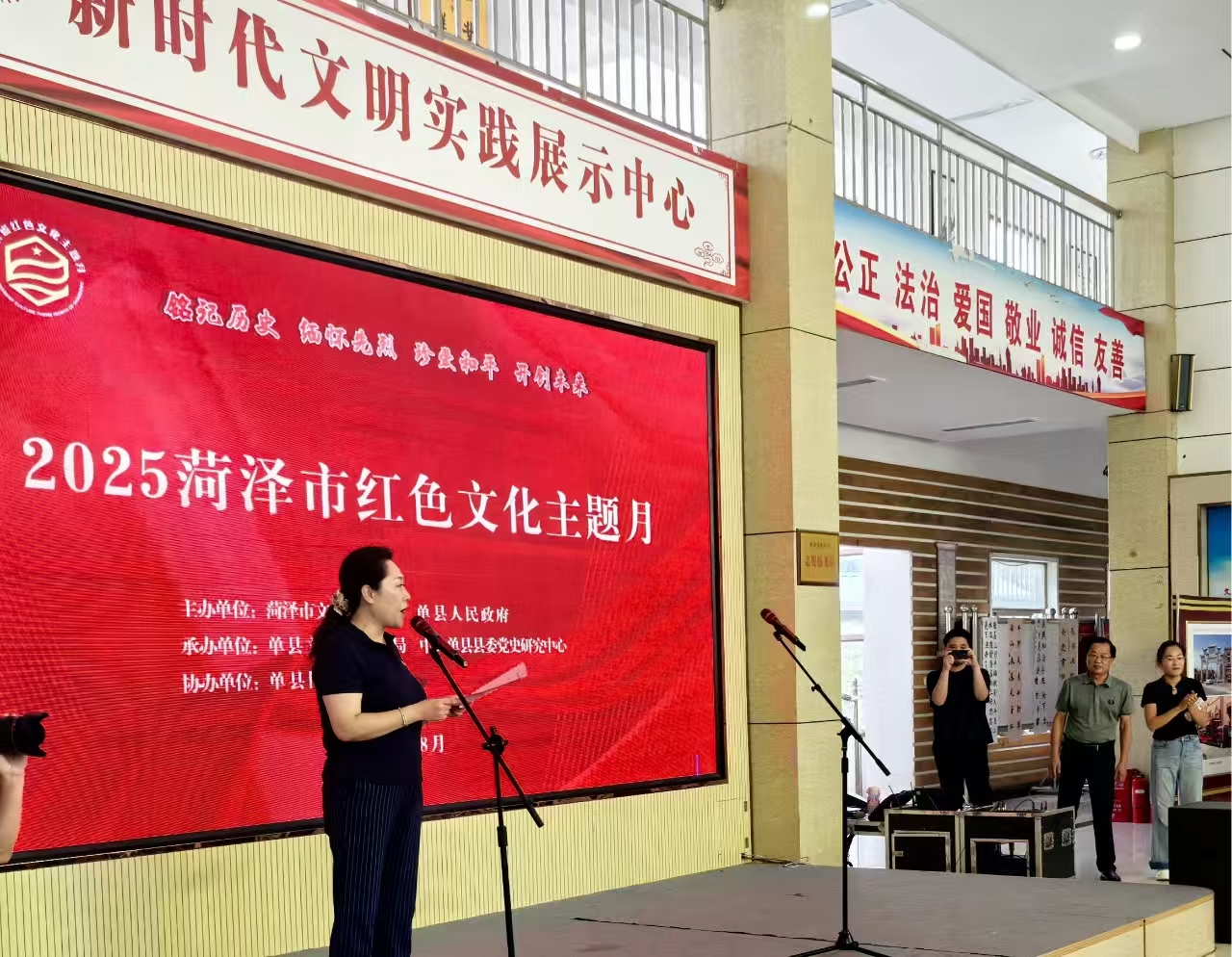 为深入学习贯彻党的二十大和二十届二中全会、三中全会精神,全面落实习近平总书记关于加强红色文化传承的重要指示要求,由菏泽市文化和旅游局、单县人民政府联合主办,单县文化和旅游局、单县县委党史研究中心共同协办的2025年红色文化主题月主会场活动,于8月1日在单县博物馆举行。