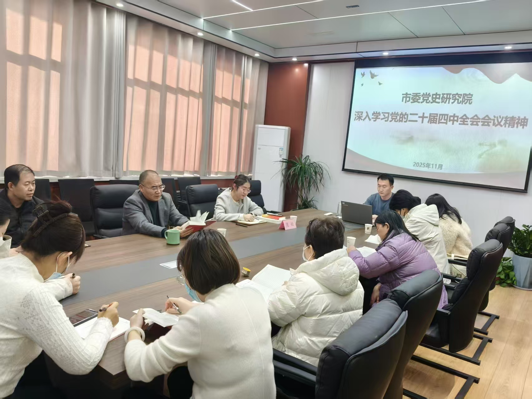 11月27日,市委党史研究院召开全体人员会议,进一步深入学习党的二十届四中全会精神并结合工作实际开展研讨交流。市委党史研究院院长、一级调研员田文建主持会议并讲话。