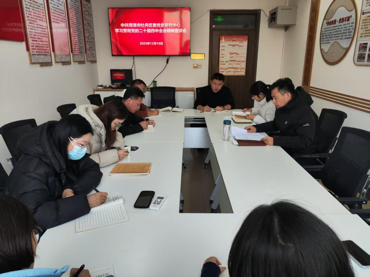 为深入学习宣传贯彻党的二十届四中全会精神,引导全体党员干部切实把思想和行动统一到党中央决策部署上来,12月18日,中共菏泽市牡丹区委党史研究中心举行党的二十届四中全会精神宣讲,中心党支部书记、主任范长军主讲,全体党员干部参加。