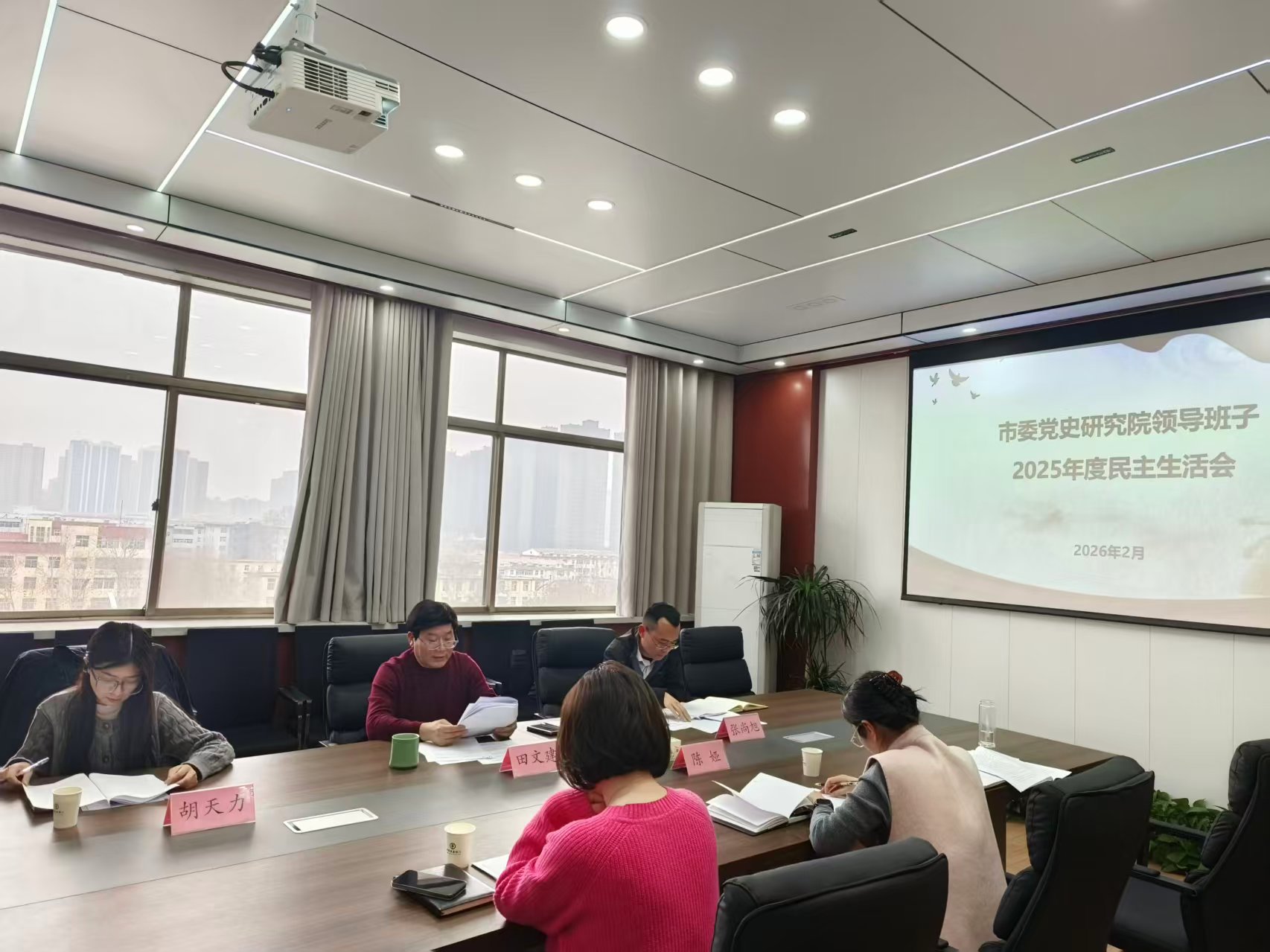 2月5日,菏泽市委党史研究院召开2025年度领导班子民主生活会。院长、一级调研员田文建主持会议,带头开展批评与自我批评并做总结讲话,副院长陈娅参加会议并开展批评与自我批评。市纪委监委派驻第二纪检监察组综合科科长张尚旭、第三监督检查室三级主任科员胡天力到会指导。